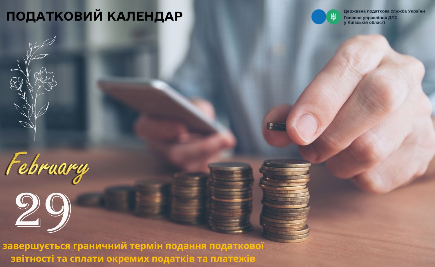 Головне управління ДПС у Київській області нагадує, що четвер, 29 лютого 2024 року є граничним терміном для подання