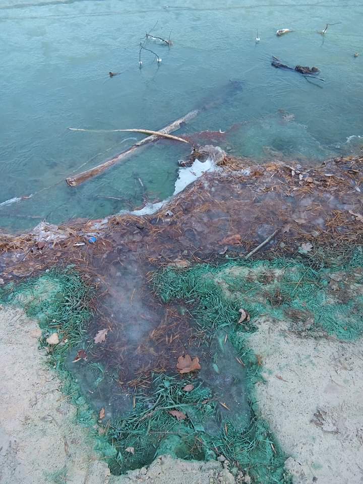 Місцеві жителі стверджують, що такий колір міг проявитися внаслідок дії хімікатів (токсичних відходів), які може скидати орендар.