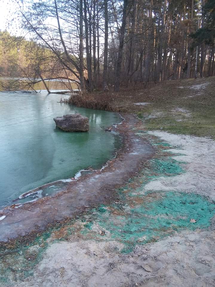 У селі Горенка Києво-Святошинського району озеро несподівано набуло насичено-зеленого кольору. Про це стало відомо з пабліку “Горенка” в Facebook, де виклали відповідні фото.