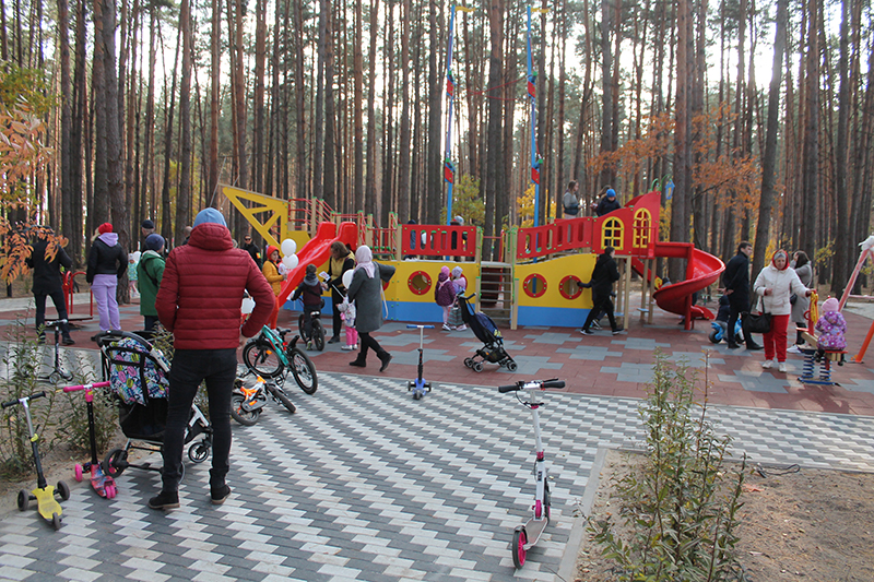 На семи гектарах лісу під будівництво парку було зрізано 110 дерев, натомість висаджено понад 8 тисяч нових дерев, і процес озеленення парку продовжується.