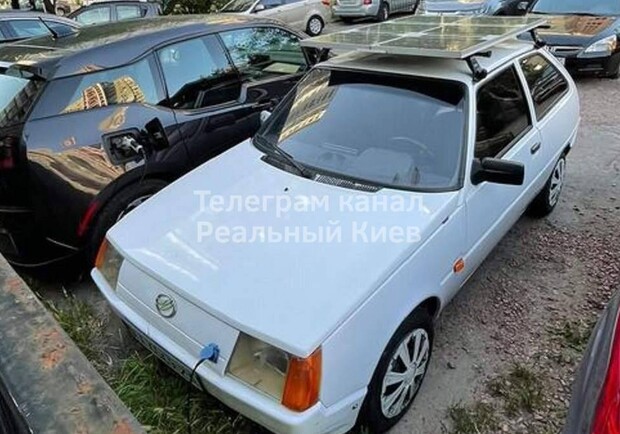 Оригінальний електромобіль із сонячними панелями на даху було знайдено та сфотографовано на однiй з парковок Києва. Електричний варіант “Таврії” може заряджатися від розетки, додатково для живлення енергією на даху авто встановлені сонячні батареї. Виготовлений в одиничному екземплярі.