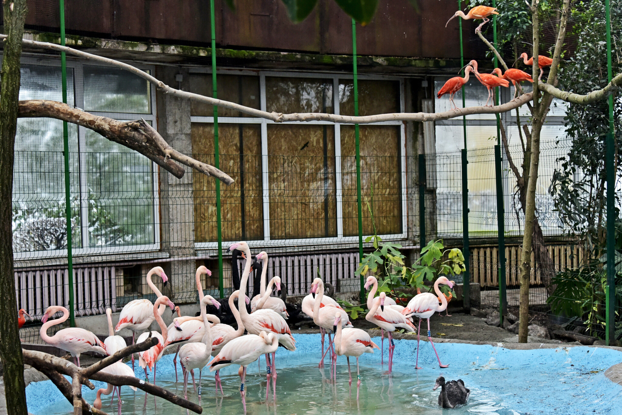 «Разом з 11 червоними ібісами в оранжереї також буде зимувати зграя з 21 рожевих фламінго та пара чорних лебедів з чотирма пташенятами. Для комфортного проживання птахам в павільйоні облаштовано теплий басейн на 25 кв. м., різнорівневі присади, природні ґрунти та розмаїття живих дерев і кущів. А завдяки скляному купольному даху оранжерея має якісне природне освітлення і теплолюбні пернаті можуть насолоджуватися сонячними промінчиками навіть у своїй зимовій оселі. Всі охочі можуть відвідати Київський зоопарк і дізнатись багато цікавих фактів про тварин та місця їх проживання», – наголосили в Київському зоопарку.