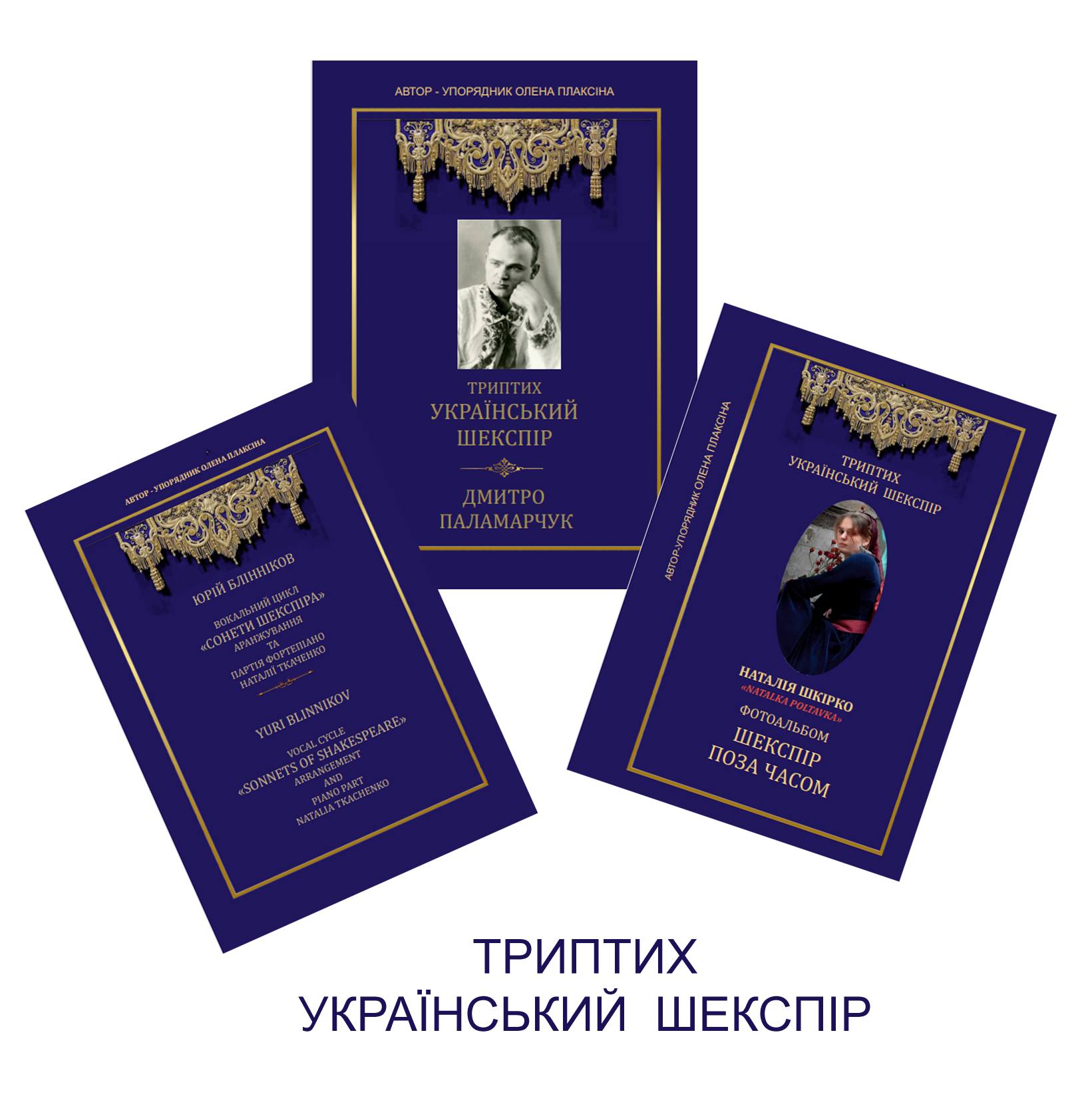– нотної збірки “Сонети Шекспіра на музику Юрія Бліннікова в перекладах Дмитра Паламарчука в аранжуванні Наталії Ткаченко” (автор-упорядник Олена Плаксіна, музичний редактор Владислав Мироненко-Міхейшин).